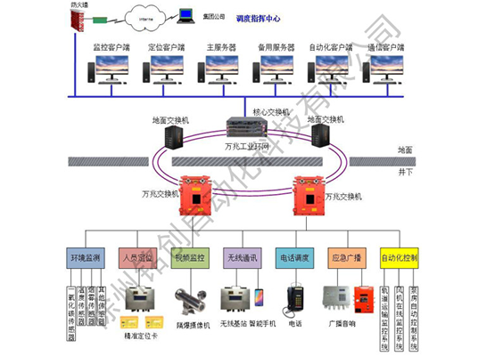金屬非金屬礦山綜合監(jiān)控管理系統(tǒng)是針對(duì)我國(guó)非煤礦山現(xiàn)狀而開發(fā)的一套軟、硬件結(jié)合的全礦井生產(chǎn)綜合監(jiān)控系統(tǒng)??蓪?duì)礦山井下環(huán)境、人員定位、電話調(diào)度、廣播通訊、無(wú)線通訊(WIFI、4G)、視頻監(jiān)控、機(jī)車運(yùn)輸監(jiān)控、風(fēng)機(jī)在線監(jiān)測(cè)等參數(shù)進(jìn)行綜合監(jiān)控管理。井下通過(guò)冗余工業(yè)以太環(huán)網(wǎng),利用多功能監(jiān)測(cè)基站,結(jié)合總線等傳輸方式將井下各種子監(jiān)控系統(tǒng)合理地融合為一體,在方便管理維護(hù)的基礎(chǔ)上大大節(jié)約了投資成本。